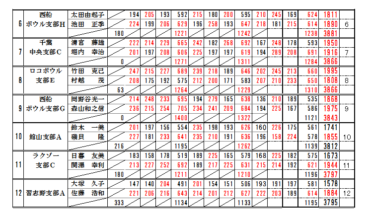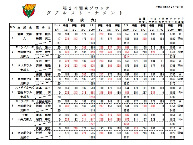 | 予選12Gトータルピンにて上位28チームが決勝に進出 |