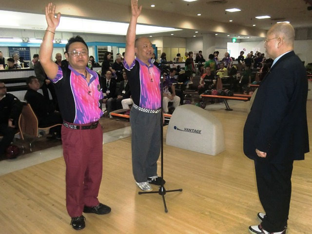 | 前年度 優勝チームの力強い選手宣誓 神奈川県連大川重則・大川忠芳選手 |