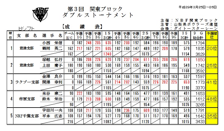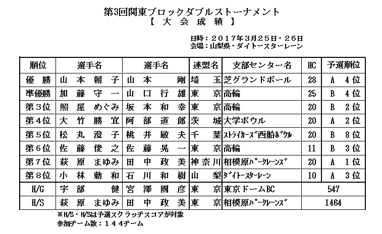 | 関東ブロック大会 開催日:平成29年3月25〜26日開催 |