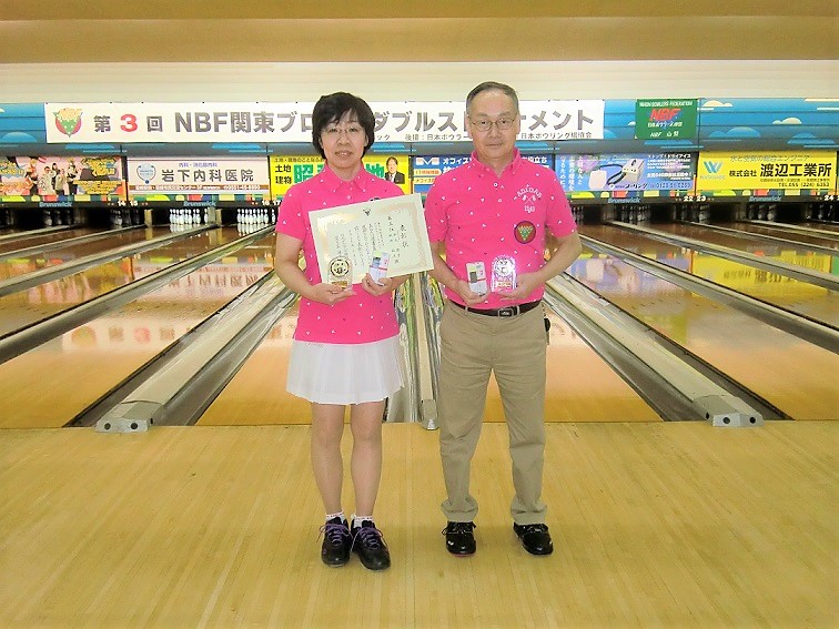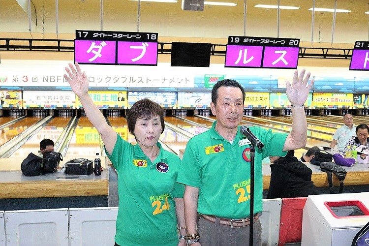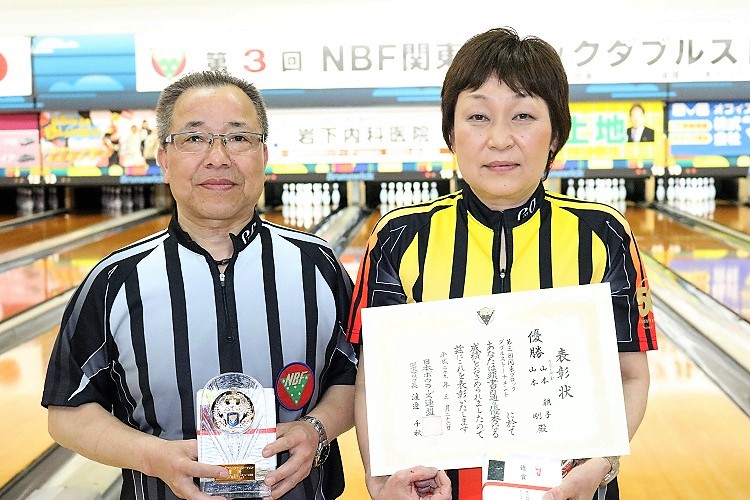 | 見事優勝を飾った山本剛・山本朝子の夫婦ペア(埼玉県芝グランドボウル支部) |