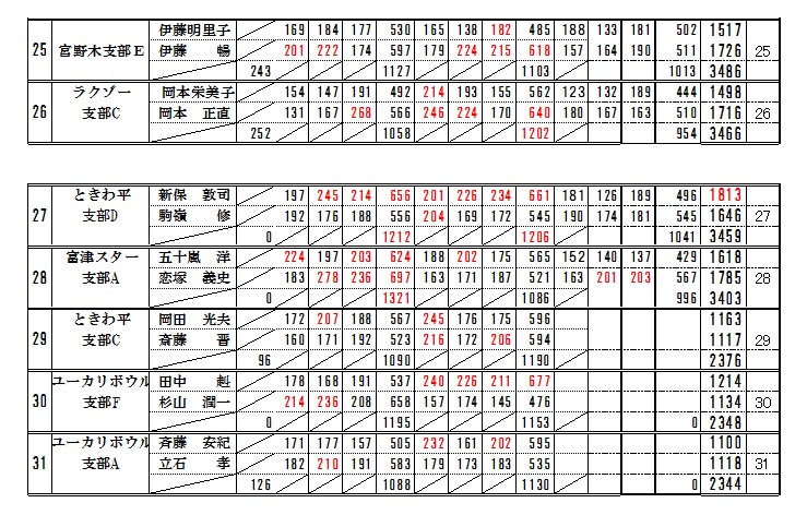 | 第3位上田庸子・塚越弘行第4位千田慶三郎・関澤幸利第5位二宮明美・二宮誠選手達 |