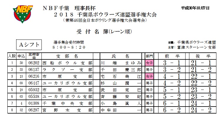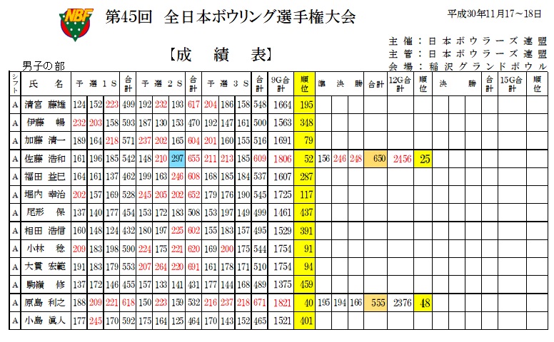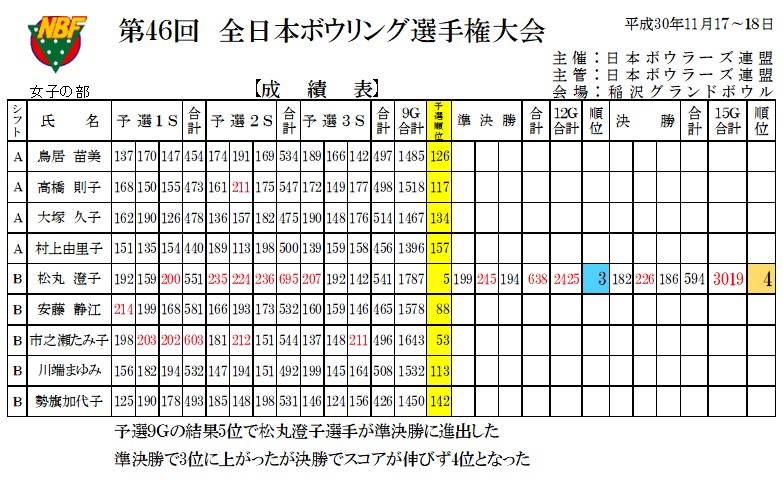 | 期日:平成30年11月17〜18日 会場:愛知県 稲沢グランドボウル |