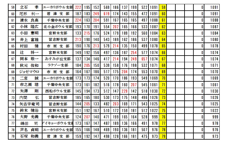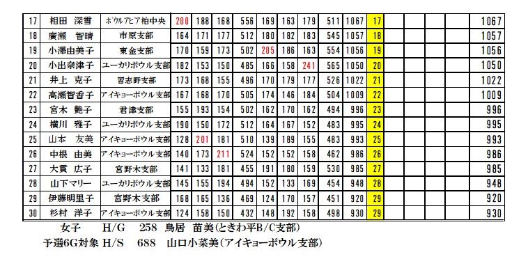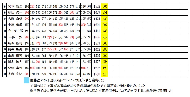 予選6G対象のH/S753で獲得福田益巳の各選手 |