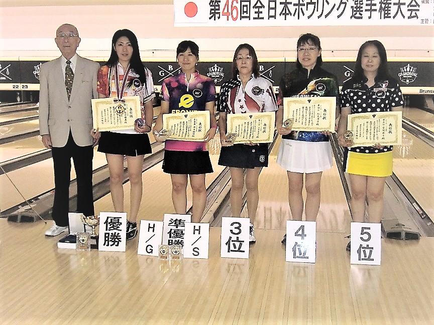 | 女子の部 上位入賞の5選手 右から2人目4位入賞の松丸澄子選手 |