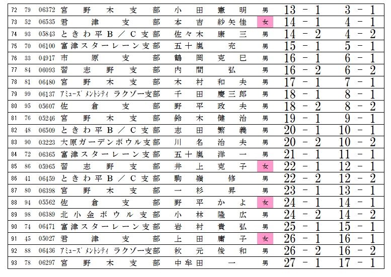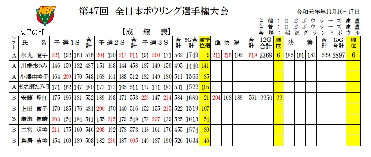 | 女子の部 上位入賞者 HG・HS獲得者 |