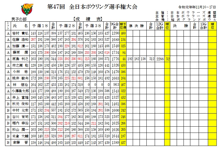 | 男子の部上位入賞者 HG・HS獲得者 |