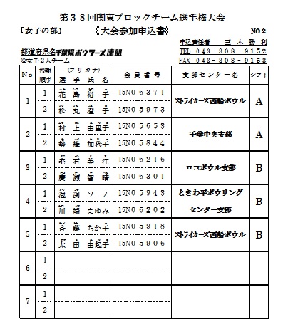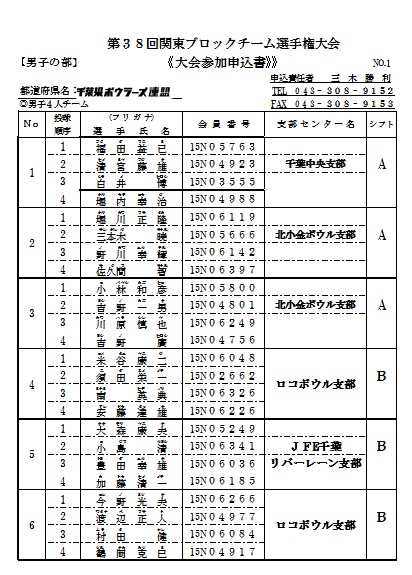 | 第38回 関東ブロックチーム選手権千葉県代表 名簿 |