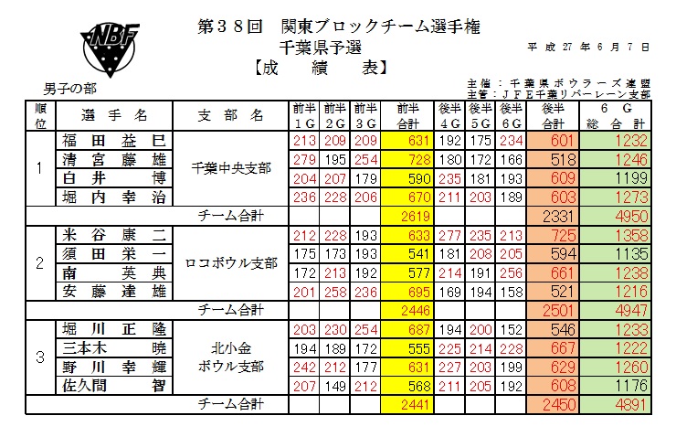 | 開催日:平成27年6月7日 会場:JFE千葉リバーレーン |