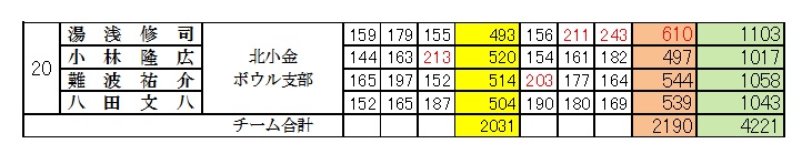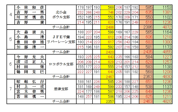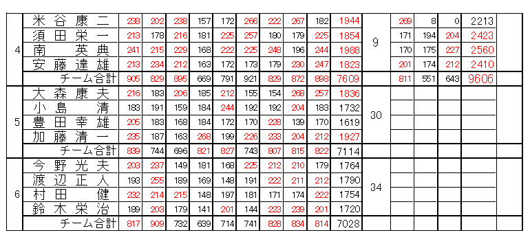 | 男子の部(4人チーム) 成績表 |