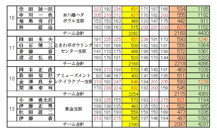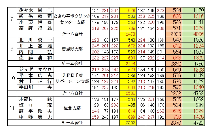 予選9Gを1位でロコボウル支部が9位で通過した。アベック優勝が期待されたが