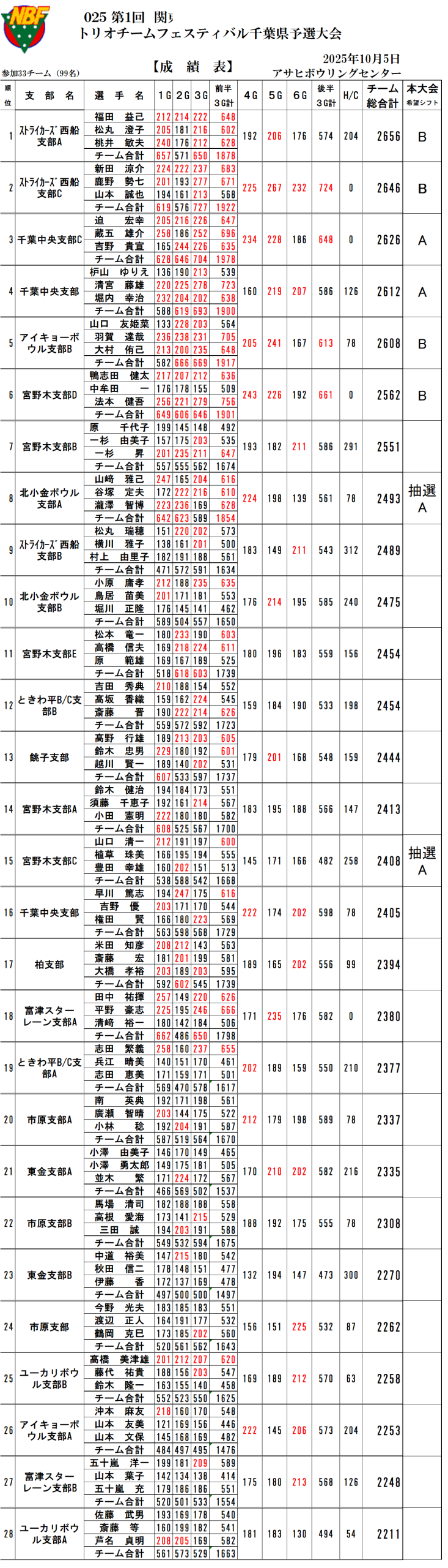 2025オールジャパンボウリングフェスティバル―成績