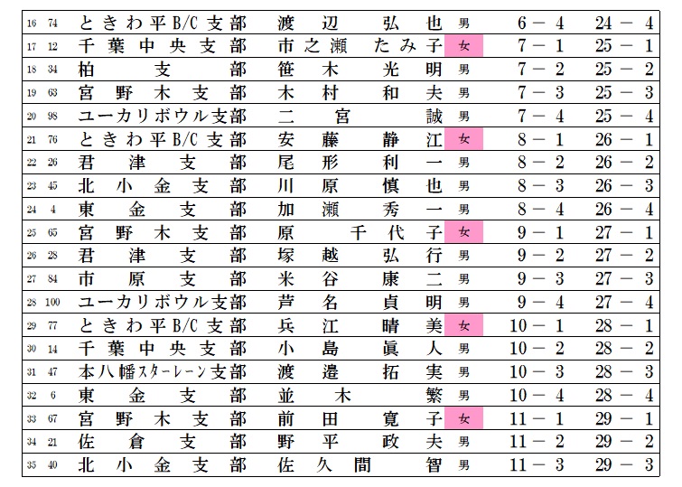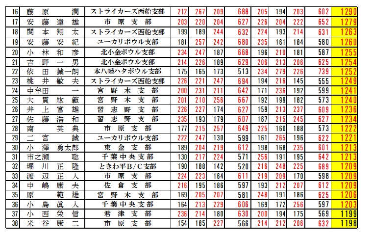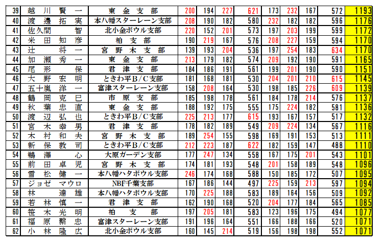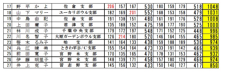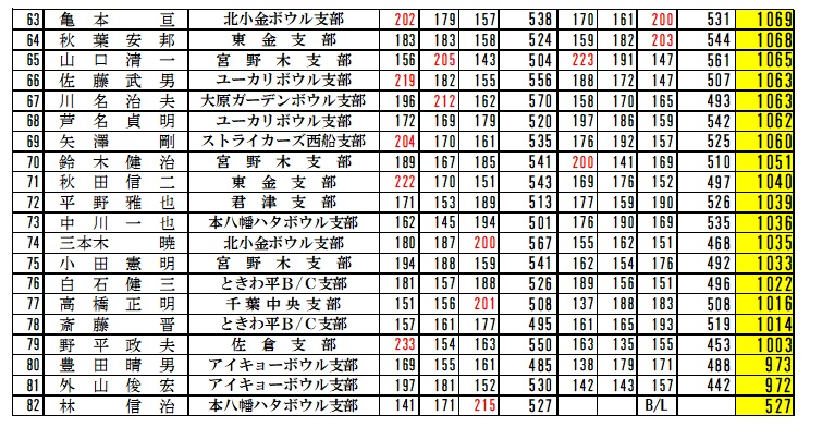| 男子の部上位5選手とH/G賞300点達成選手 |