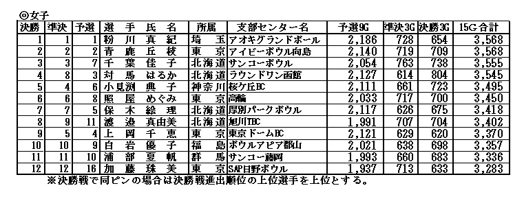 | 女子の部上位5選手 |
