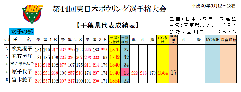 | 千葉県代表 成績表 |